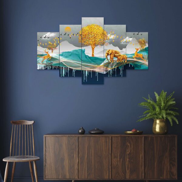 Nature Set of Five 3D Framed Paintings for Wall Decoration – Ideal for Home, Living Room, and Bedroom (75 x 43 CM)