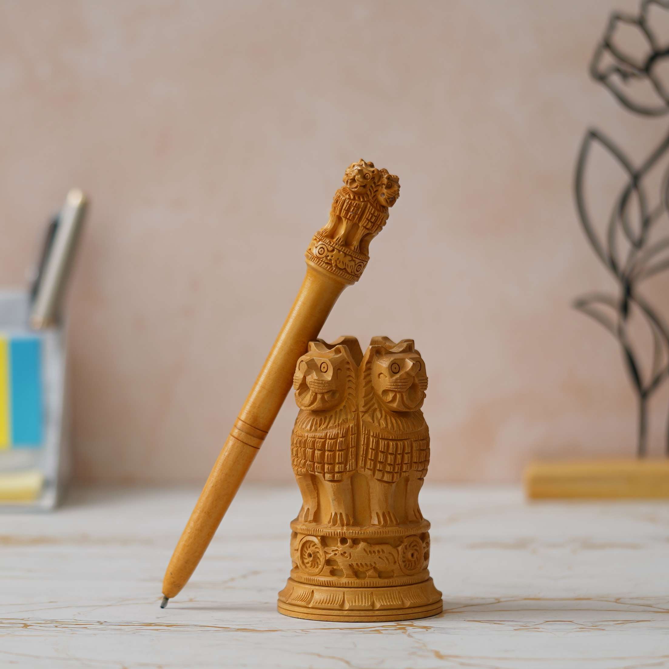 Handcrafted Wooden Ashoka Pillar Replica: Symbol of Indian Heritage